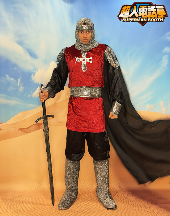 中世紀騎士變裝服裝出租(租借) 角色名稱 : 十字軍 商品代號 : AD5008 商品尺寸 : L 碼 商品包含 : 1 – 上衣 2 – 褲子 3 – 腰帶 4 – 頭套 5 – 腳套 【額外加租配件】 1 – 武器請參考西洋武器系列目錄