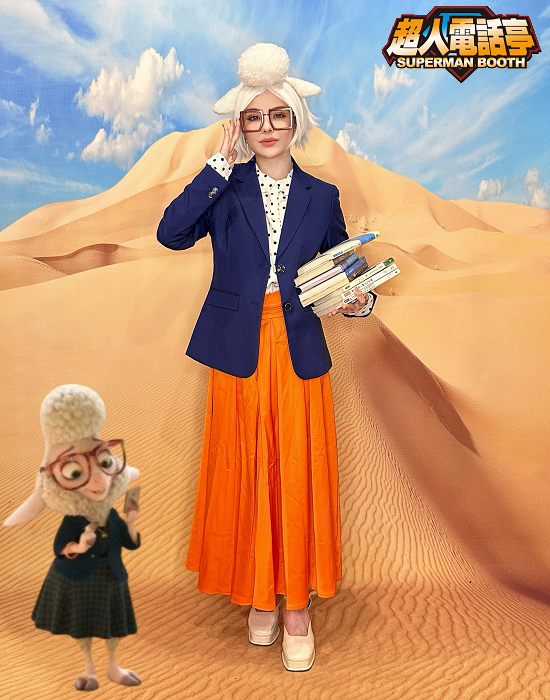 動物方程式楊咩咩副市長cosplay變裝服裝出租(租借) 角色名稱 : 動物方程式 – 楊咩咩副市長 商品代號 : AB4374 商品尺寸 : M 商品包含 : 1 – 襯衫 2 – 外套 3 – 裙子 4 – 綿羊髮箍 5 – 眼鏡 【額外加租配件】 1 – 圖示假髮 代號 AW1005 $300 2 – 圖示綿羊頭套 代號 BB0164 $200