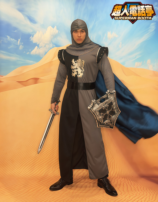 中世紀十字軍cosplay變裝服裝出租(租借) 角色名稱 : 十字軍 商品代號 : AD1039 商品尺寸 : L 商品包含 : 1 – 上衣 2 – 褲子 3 – 頭套 4 – 腰帶 【額外加租配件】 1 – 武器請參考西洋武器系列目錄