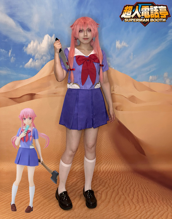 未來日記我妻由乃cosplay變裝服裝出租(租借) 角色名稱 : 未來日記 – 我妻由乃 商品代號 : AE2500 商品尺寸 : S & M 商品包含 : 1 – 上衣 2 – 蝴蝶結 3 – 裙子 【額外加租配件】 1 – 造型假髮 代號 AW7000 $400