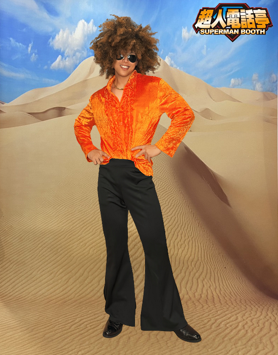 歐美復古裝cosplay變裝服裝出租(租借) 角色名稱 : 歐美復古裝 商品代號 : AS3011 商品尺寸 : L (1), XL (6) 商品包含 : 1 – 粉花邊襯衫 【額外加租配件】 1 – 黑喇叭褲 $200 2 – 白喇叭褲 $300 3 – 圖示假髮 代號 AW3019 $200 4 – 其他復古假髮請參考復古假髮系列目錄