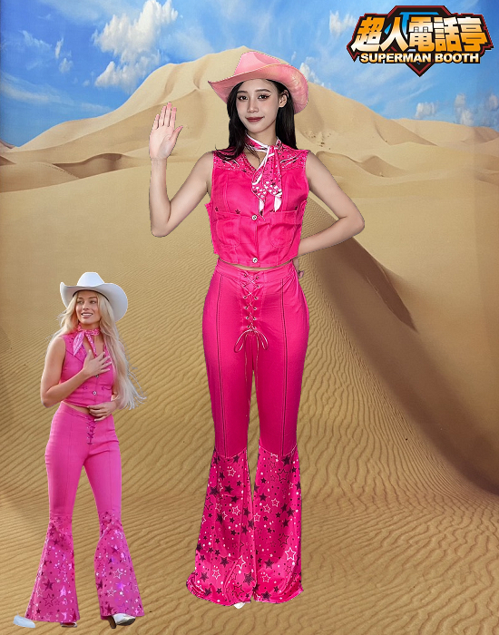 Barbie芭比cosplay變裝服裝出租(租借) 角色名稱 : Barbie芭比 – 芭比 商品代號 : AB3332 商品尺寸 : S(1), M(1), L(2), XXL (1) 商品包含 : 1 – 上衣 2 – 褲子 3 – 領巾 4 – 帽子(粉或白) 【額外加租配件】 1 – 金長髮 $300